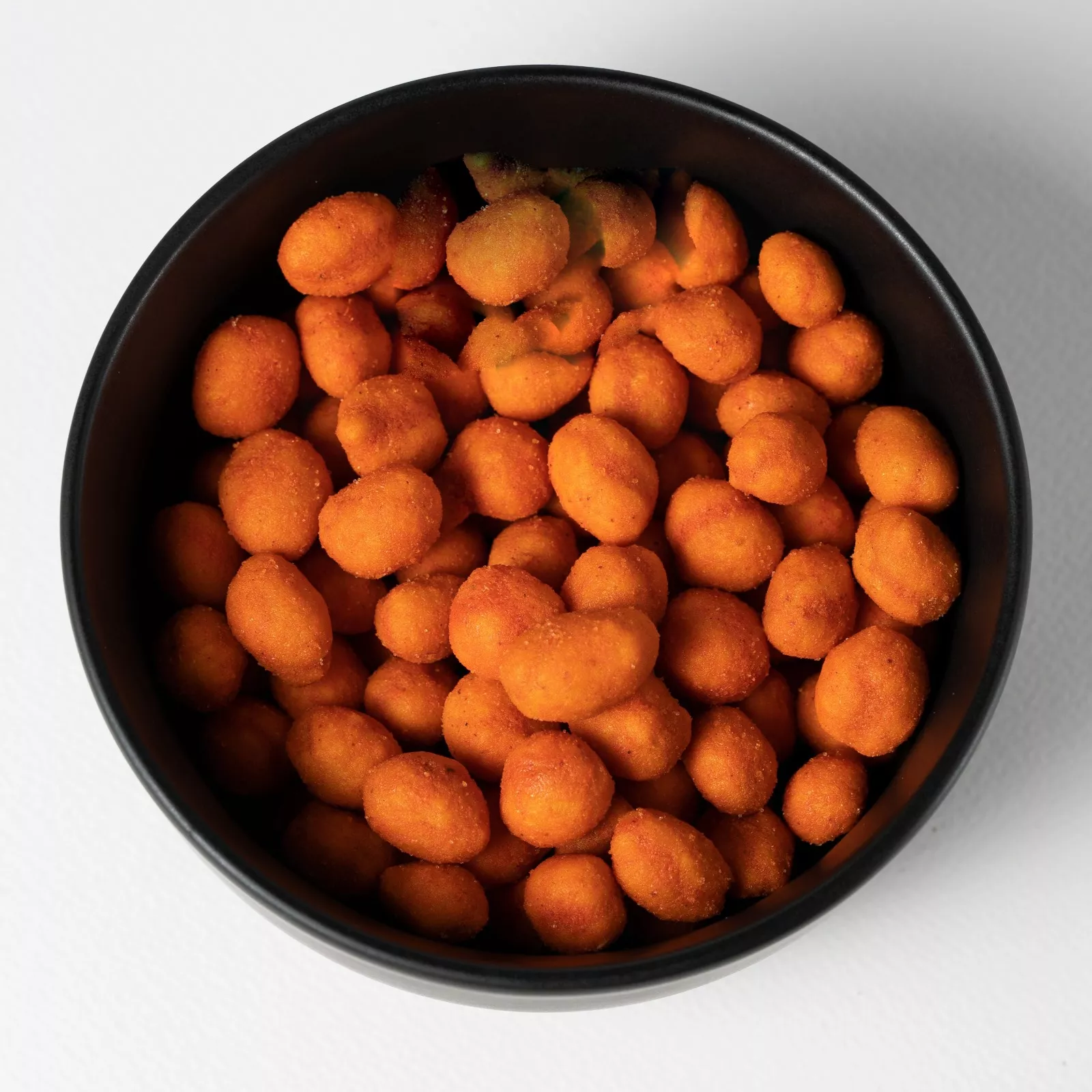 بادام زمینی روکش دار از مغز بادام زمینی تازه تهیه می‌شود که با لایه‌ای از خمیر آرد، ادویه و طعم‌دهنده‌ها پوشانده شده و سپس به صورت برشته پخته می‌شود. این فرآیند باعث می‌شود محصول نهایی بافتی ترد، مزه‌ای خاص و ظاهری جذاب پیدا کند.
